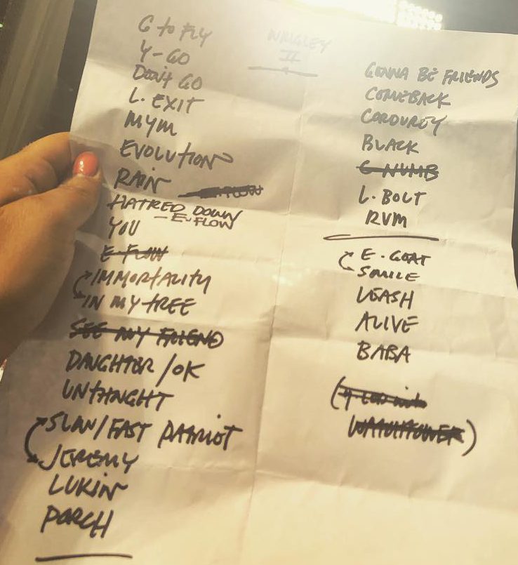 At some point Eddie explained that they had gotten the curfew extended. Back in 2013, when they were delayed for ages, they had the curfew extended to 2AM. That didn’t sit well with locals, so this time the curfew was extended to 11:30. This meant a pretty standard 2 and half hour show, but certainly no epics. And as you can see from the setlist below, they crossed out a bunch of stuff (but they often do).