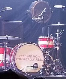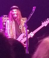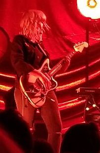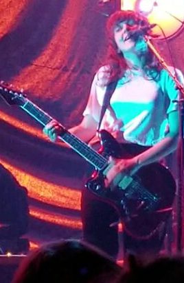 Apparently “Crippling Self Doubt and a General Lack of Self Confidence” is the new single–she played in on Seth Meyers’ show the other night. I didn’t notice last time that bassist Bones Sloane and guitarist Katie Harkin sang the title of the album during the chorus. I have this kind of bet with myself to see if I can get a good picture of Bones. This is the third time I’ve seen him play and I just can’t ever seem to get a decent picture of him. Mostly that’s because I’m usually on the left side and he’s on the right. But he seems to be always darkly lit and hidden behind hair and a hat. I think he wears glasses but I can never tell. Here’s my latest attempt where at least you can see him smile.