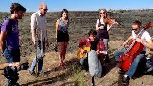 We were about to call it. The band was running late, our phone service wasn’t working well backstage in the remoteness of the Sasquatch Music Festival in rural Washington state, and the next band was about to begin on the main stage nearby — thus making the prospect of a Field Recording impossible. Then, suddenly, a white van rolled up, straight from the main gate, and out popped six musicians with stringed and brass instruments. Within minutes, they’d set up, sound-checked and performed a jaw-dropping rendition of “That Man Jumped Out the Window” (from 2005’s Advice From the Happy Hippopotamus) with no practice whatsoever.