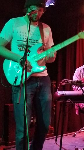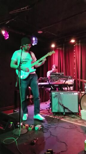 This wouldn’t work if the rhythm section wasn’t top notch and that’s where drummer Cesar Arakaki and bassist Andy Cush come in. Cush played a dynamite low end, sometimes doing some riffage of his own, but mostly holding the rhythm down while Cesar played fancy things on a simple kit. They were assisted by Pat Gubler on keys. To my ear the keys weren’t loud enough, unless he was the perfect unobtrusive backing instrument that fleshed out the sound without me realizing it.