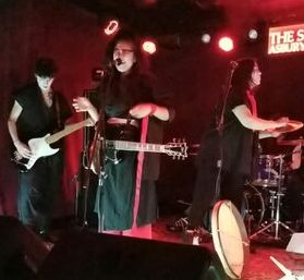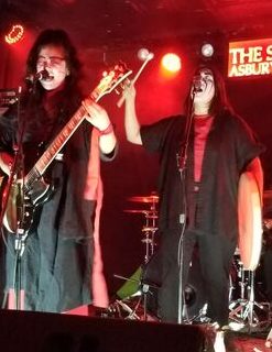 The band came out in full make up with matching robes. The design on the back of the robes was hard to see in the dim light.