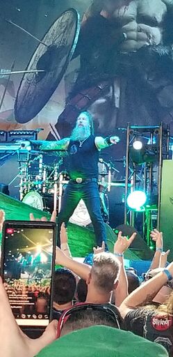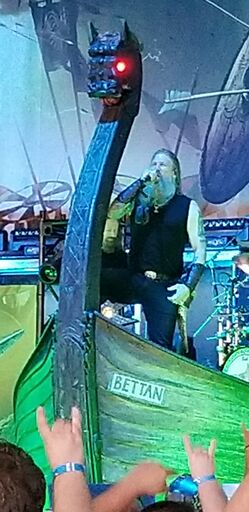 Finally singer Johan Hegg came out with a horn on his belt and a swagger in his walk.