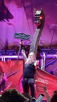 They employed some pillars of smoke. Most of the band climbed aboard the ship at some point. Every time Hegg raised his devil horns, the crowd was eager to respond in kind. There was also a lot of crowd surfing.