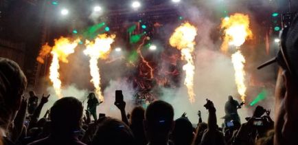Despite all the Satanism and violence and hell fire. Tom Araya is a pretty funny guy. Earlier in the night he had commented on how many little kids there were there (there were a lot). I saw several kids under ten walking around. (with parents at least). But he asked if everyone was ready for some “family friendly entertainment.” Then he asked if everyone knew what Payback was–“payback’s a bitch motherfucker” (possibly the least original lyric in all of their catalog, but still fun to sing along to).