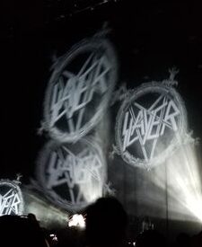 The crosses were summarily replaced by the Slayer logo. And when the tape ended, the curtain dropped, the lights came on and there were Tom Araya and Kerry King just a mosh pit away from me.