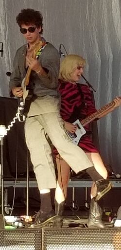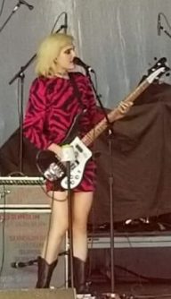 In the two years since I’ve seen them, they have grown bigger (adding a keyboard player) and more confident. Julia Cumming was a lot louder and more brash as the frontwoman–shouting to the people in the back (and the lawn) and encouraging us all to stand for the final song. She also sounded great, employing a few different vocal styles on each song. As always her bass (she plays a Rickenbacker, which is awesome) sounded great. The biggest change was in her look. Last time she was wearing a dress and had a fairly normal hairstyle. For this show she was all glammed out, with a cool pink tigerprint dress and her hair and make up very new wave. She looked an awful lot like Debbie Harry.