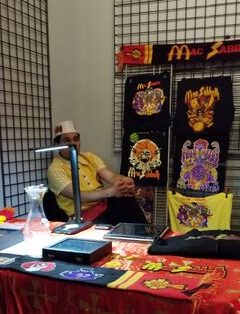 Interestingly, Mac Sabbath have never released any music (aside from a flexi disc). But their merch table was just chock full of stuff: T-shirts, scarves, coozies, and even a coloring book.