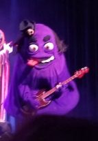 The bassist is Grimalice (the least impressive name, it’s Grimace with an Alice in Wonderland hat on, but his other name is brilliant: “I Can’t Believe It’s Not Butler.”)