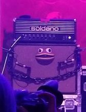 Given how many free tickets were distributed, I don’t see how the band made any money. I have to assume that this band is made up of independently rich guys for them to put this level of detail into their stage show. I mean the stage set was totally tricked out with details, like this strange little amp (right). Or even the creepy statues. There were two fog machines at the front of the stage that looked like Ronald’s head on a pike. And in the back on either side were statues that shot red laser beams. I have since learned that they sold out shows all throughout Florida and there were quite a number of people who seemed to know them pretty well, so they must have a decent-sized fan base.
