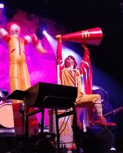 The backdrop was a nightmarish version of McDonaldland, with hamburgers as skulls and a bridge with broken arches. But it was the band members themselves that were so impressive.
