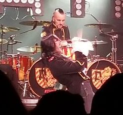 Drummer John Alfredsson is on a large riser, which makes it very easy to see him. He came out first and the lights lit up and he played an introductory drum solo before the rest of the band came out. They were all dressed in similar outfits which I couldn’t quite place. But they looked kind of ringmastery but also regal.