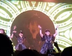 Then the three singers/dancers came out. I’m still not entirely sure who actually sings in the band. I know the lead singer is Su-metal (usually in the middle). Initially there were three singers, Su-metal, Moametal and Yuimetal. Yuimetal left and there were just the two singers, now they have added a third dancer to complete the triangle look, but I’m not sure if Moametal sings (maybe they have headset mics, while Su-metal has a handheld one?). The note on Setlist (and the people who update these things know everything, apparently, says: Performed by Triangle Formation adding one selected CHOSEN DANCER. So there is that.