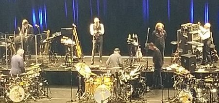 Following my own advice, I scored front row balcony seats to this show, and they were really spectacular. The band sounded great and it was easy to see what everyone was doing (where to look is a perennial problem). [My seats in Philly were also exciting–stage left in a balcony box, staring right at Fripp–I’ll definitely try to get them again if they come around in 2020).