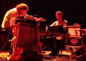 Cooper Crain and Dan Quinlivan faced each other and began creating a quiet “spacey” sound. I’m not sure who was doing what, but they were both fiddling around with knobs and keys. Rob Frye sat to my left also playing around with switches and pedals.