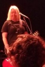 During the evening, Donna told us that there are officially five members of the band, even though only four were there that night. Jody Bleyle was stage center playing mostly bass and singing; Kaia Wilson was right in front of me on the left, playing guitar and also singing; Donna Dresch was on the far side of the stage playing mostly rhythm guitar and some bass. Melissa York was on drums. Their fifth member is Marcéo Martinez who played the West Coast dates of the tour. I don’t know anything about Martinez’ live playing, but holy crap Melissa York was awesome behind the kit.