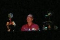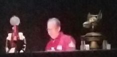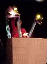 Joel came out with a guitar and sang the opening theme song (in a very high register). [I felt less concerned about taking a few videos this year and no one said anything.] He had us sing the “la la las” and had fun yelling at us when we sang out of place. Then he did a Robot Roll Call.