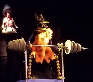 Before the intermission, the skit was Crow as a weightlifter. He stood with a barbell in front of him. As he lifted, he strained very hard and all manner of things fell “out of him.” Primarily they were balls from a play pit. But when he did his final lift, a while bunch of things came out which turned out to be…merch that was available to buy . It was a blatant and cheesy cash grab, but hey, if they don’t deserve some hard-earned money, then who does?