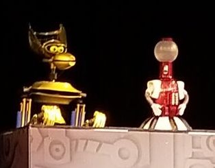 Then came Crooooooow. But Crow T. Robot did not look usual at all. Because Crow T. Robot has legs! Mind blown. And just to prove that point, he came in riding a pogo stick. When he showed off his pogoing skills, they had to whisper that “your operator is showing.”