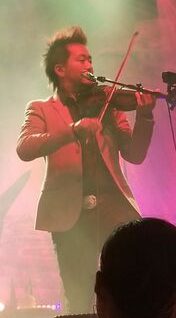 This was the fourth time and his band was even bigger. He had stage decor (what looked like grass and a giant crane in the background). And his latest album is full of all kinds of instrumentation beyond the violin. K. played guitar and keys as well as violin.