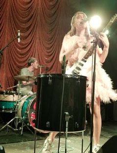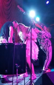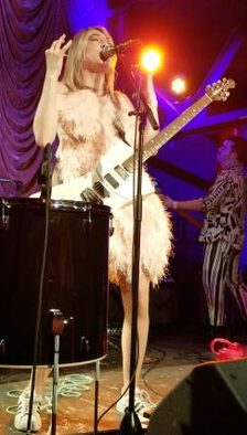 Hendricks came out on stage wearing a body suit covered in feathers. It was fun and silly and when she pogoed (which she did a lot) the feathers flopped around and pieces fell out all over the stage. She was the most joyous and fun performer I’ve seen.