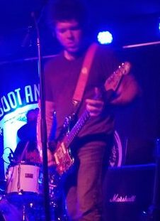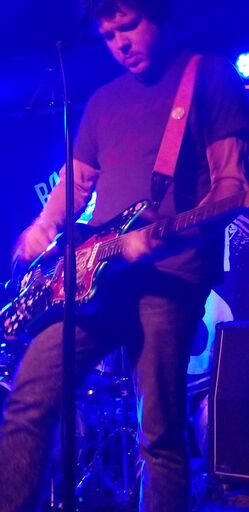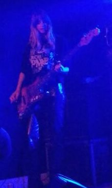 When the band walked up on stage, the lighting was decent and it was nice to get a good look at the band before the stage people turned the lights blue. After a couple of songs, they begged for the lights to be changed and were told that there was no one there who could fix them. What? What kind of crappy way to treat a band! I really like Boot & Saddle as a venue but lately their lights have been terrible. So they were bathed in deep blue all night long with never a change. (It’s better than magenta, but just barely).