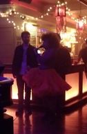 I watched the band set up their gear. Singer A.J. Hayes was not wearing the big red skirt as she did so. After they were all set up, they stepped away and then came back right at 9.