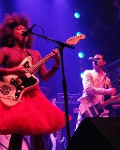 Hayes was a lot of fun with an impressive voice capable of big powerful howls, shrieking yips and a lot of passion. She is definitely the focal point of the show, but bassist Adam Davis (the golden boy in his gold suit) is more or less in charge of the music. He doesn’t do lead lines or anything crazy, but everyone looks to him for direction.