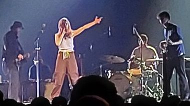 We arrived at the arena much later than I thought we would. Traffic was terrible. It was raining. My daughter waited on a long line for the bathroom. And then the merch line was enormous. We debated coming back between the sets (which we should have absolutely done). Our seats were also on the far side of the arena–literally all the way on the other side of the entrance It also turned out there was a better merch table with a shorter line right near our seat.