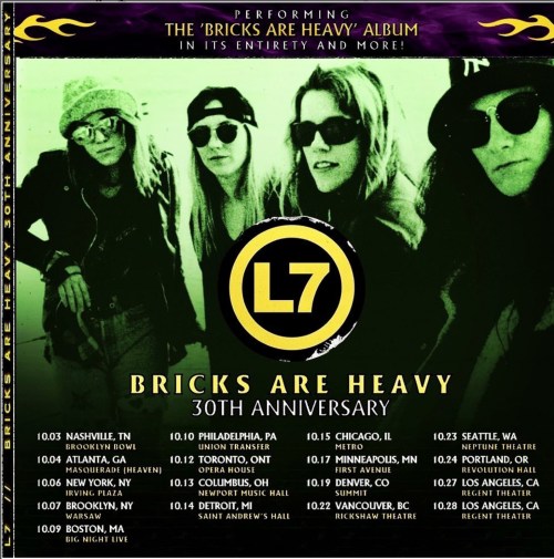 I don’t like saxophone, so that kind of turns me off. But they have the same energy as L7, and I think this is a great paring of bands.
