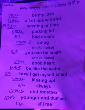 During a lull he spoke clearly and asked for “17.” She said that this was a new band and they didn’t know that song. It was a good explanation and way of getting out of saying I wrote my own setlist jackass. Because she’s been with this band for a pretty long time as far as I can tell.