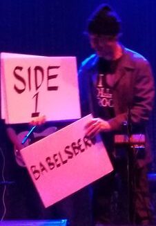 When the first side was over, he flipped the sign to say Side two. As he said this the guy next to me (there weren’t very many people there) left the room. I assume he was going to the bar, but he never came back). Gruff called out to the say that the rest of the songs are good too! “This one is called Negative Vibes”–then he looked sternly at where the man walked and reiterated the song title.