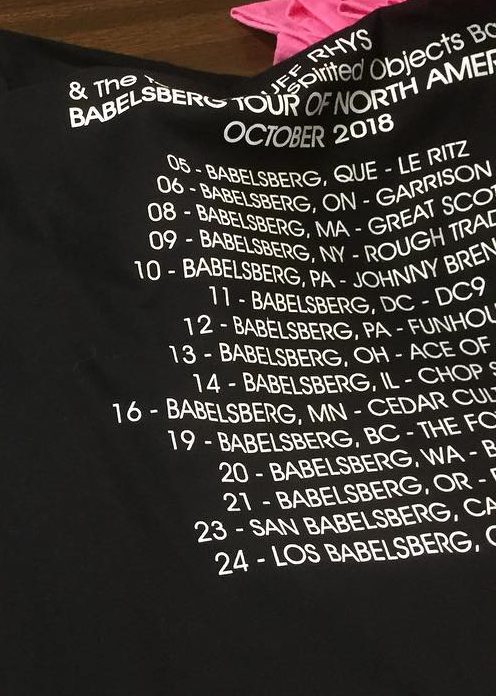 When the show was over I went to the merch table and I cracked up at the concert dates listed on the T-shirt (and poster). It was very nice being in Babelsberg, PA for the night.