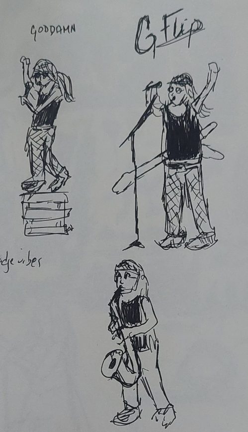 The weather was a but threatening and we didn’t really want to see anyone at the Chrysalis Stage, so we decided to park in the Pavilion. We missed the end of Hazlett and saw some of Bartees Strange on the video screen. So G Flip was up next.