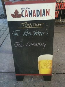 First of four shows at The Horseshoe Tavern dubbed Spring Nationals. Dave Bidini, Dave Clark, Martin Tielli, Tim Vesely, featuring Hugh Marsh on Violin and Ford Pier on Vocals and Keyboards. In addition to the newer songs that they played in the Winter, they debuted three new songs: Rear View (Tim), Here Come The Wolves (Dave B), AC/DC On My Radio (Dave B/Dave C).