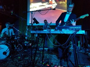 She starts with “Industry Games.” Lovely ooohs from the backing vocalists then David Levitan plays an echoing guitar (“both catchy and eerily haunting” that I found reminiscent of the Close Encounters melody). Up comes that cajon with gentle thumps from Dominic Missana. Then she starts rapping.