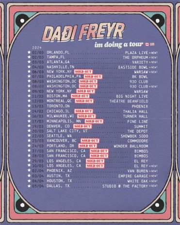 I saw Daði Freyr about a year and a half ago on his first tour of the United States. So now I’ve seen ALL of his appearances in Philadelphia (two). I enjoyed the first one so much I grabbed a ticket for my wife and daughter as well. Turned out that my daughter had a school thing she couldn’t miss. And had I looked up the details, I would have seen the the show was sold out and I probably could have sold my ticket. I never would have guessed it had sold out, but look at that poster–sold out up and down the country.