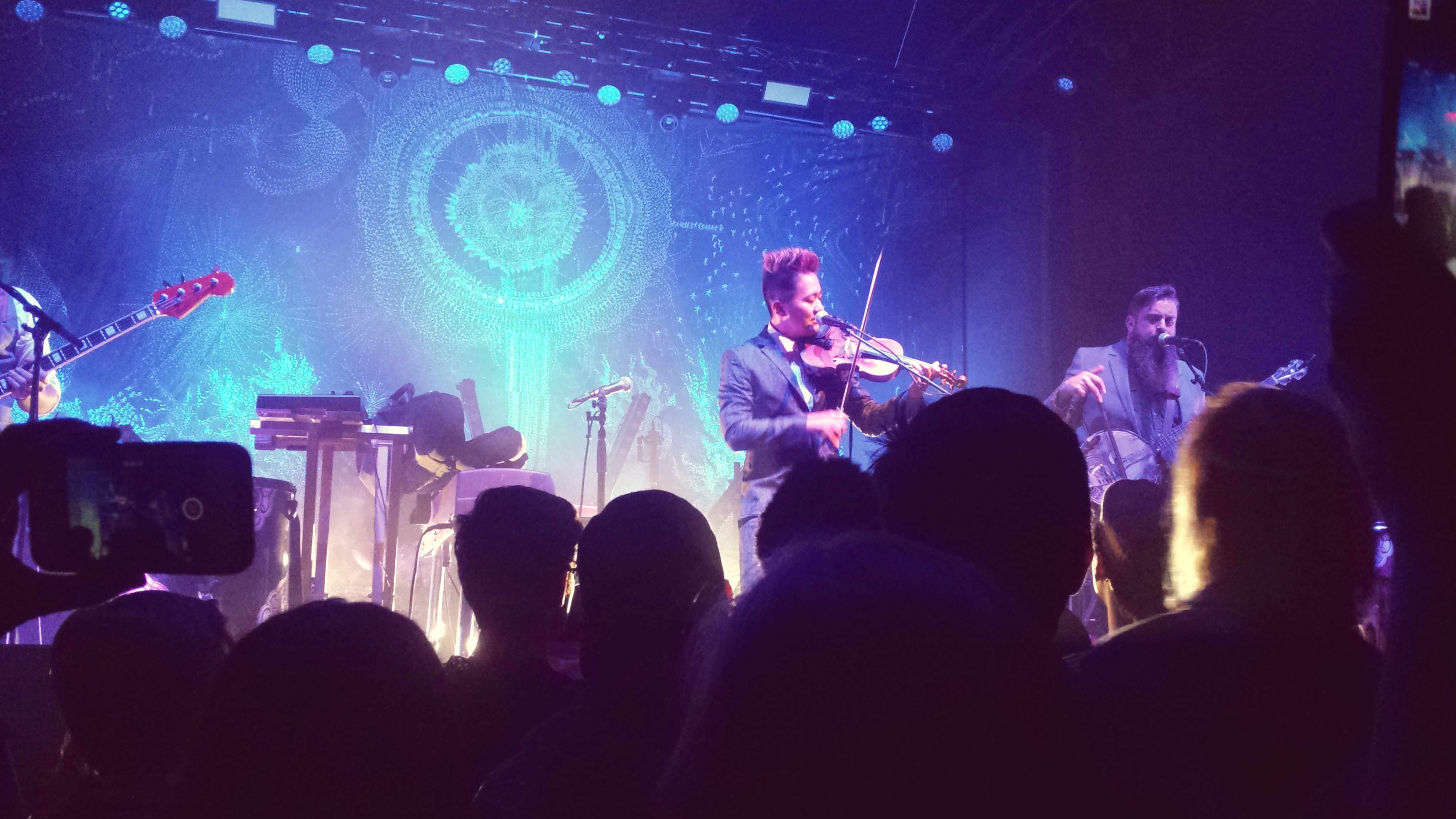2016-10-04-22-03-10This is our third time seeing Kishi Bashi, and our second time seeing him with our friends Liz and Eleanor.  We all saw him together the first time when he opened for Rodrigo y Gabriela.  And they were hooked just like we were.  They have since seen him with his string quartet, which we didn’t.  I’ve liked him so much solo that I didn’t know if I wanted to see others playing with him.  Well, Tuesday’s show was a full band and it was phenomenal.