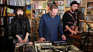 chvChvrches are just on this side of the kind of synth pop that I like.  I simply can’t deny the awesomely catchiness of “Recover” which must be due to Lauren Mayberry’s wonderful voice, or perhaps the bubbly synth sounds that the three of them generate.  In this Tiny Desk version, they brought all kinds of synths along with them.  I don’t know what they normally play live, but this is an amusing sight to see 4 keyboards (for three players)—all of the musicians with their arms hanging down as they play their instruments (synths that are about a foot long and boxes with lots and lots of dials).