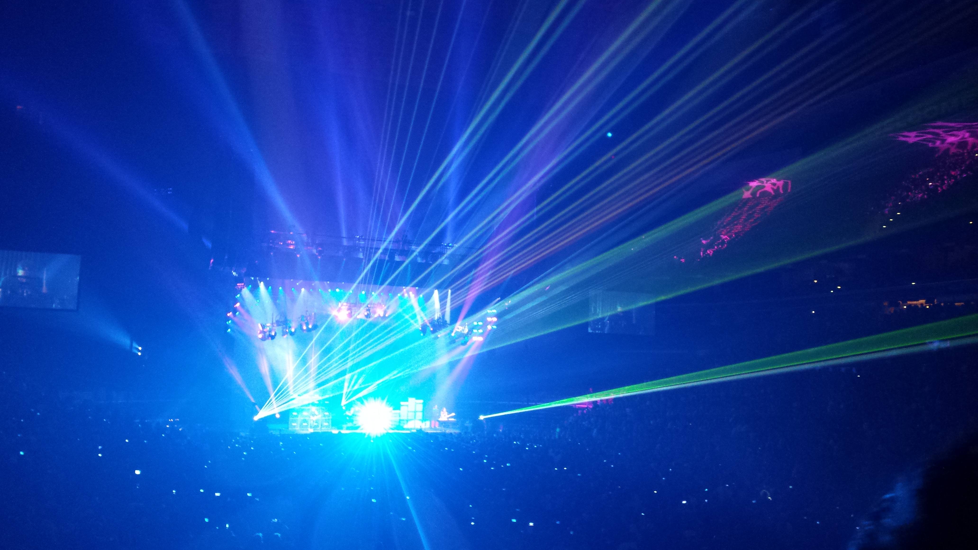 I haven’t been to a big arena show (except for Kiss) in a long time, so I kind of forgot what we’d be getting. And wow did we get a lot–flash pots, fire, lasers, explosions, video screen (even a possible marriage proposal in front of us). And, at any Rush show… lots of air drumming (including from myself).